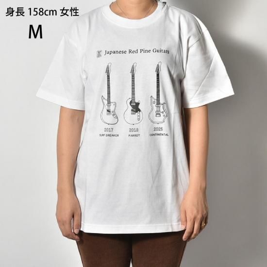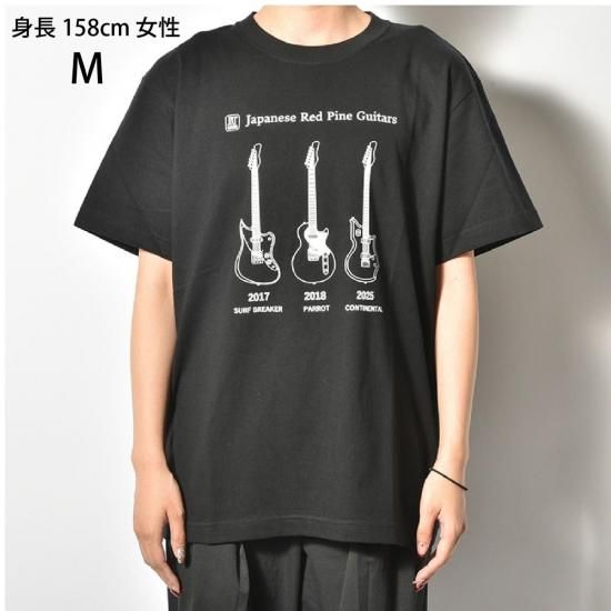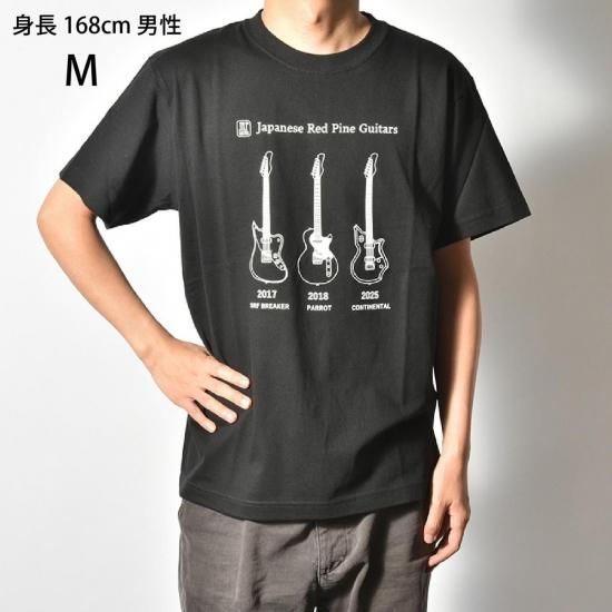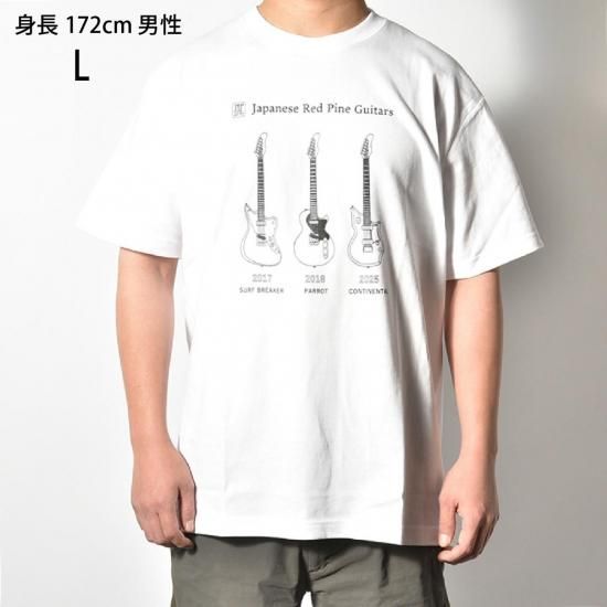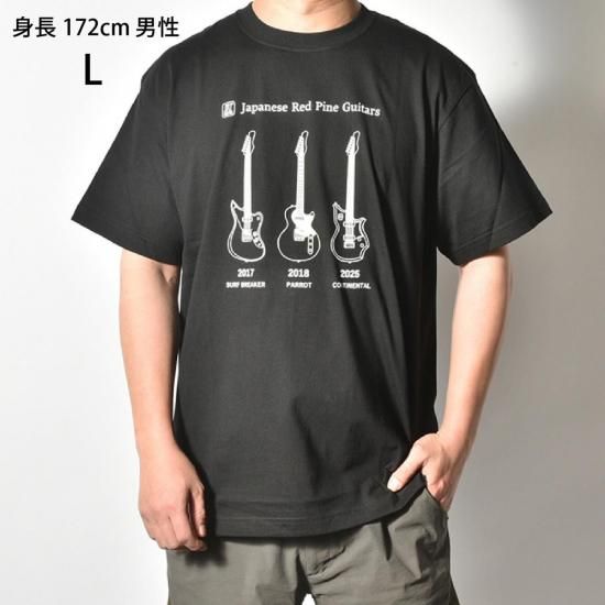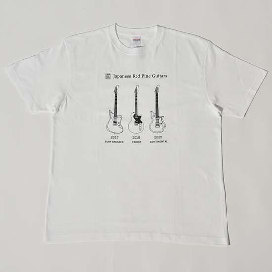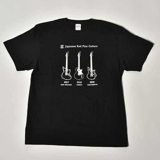 やむを得ず伐採されたアカマツから作られるギタープロジェクト「JRP Guitars」の看板モデル「SURF BREAKER」「PARROT」「CONTINENTAL」がプリントされたTシャツ。